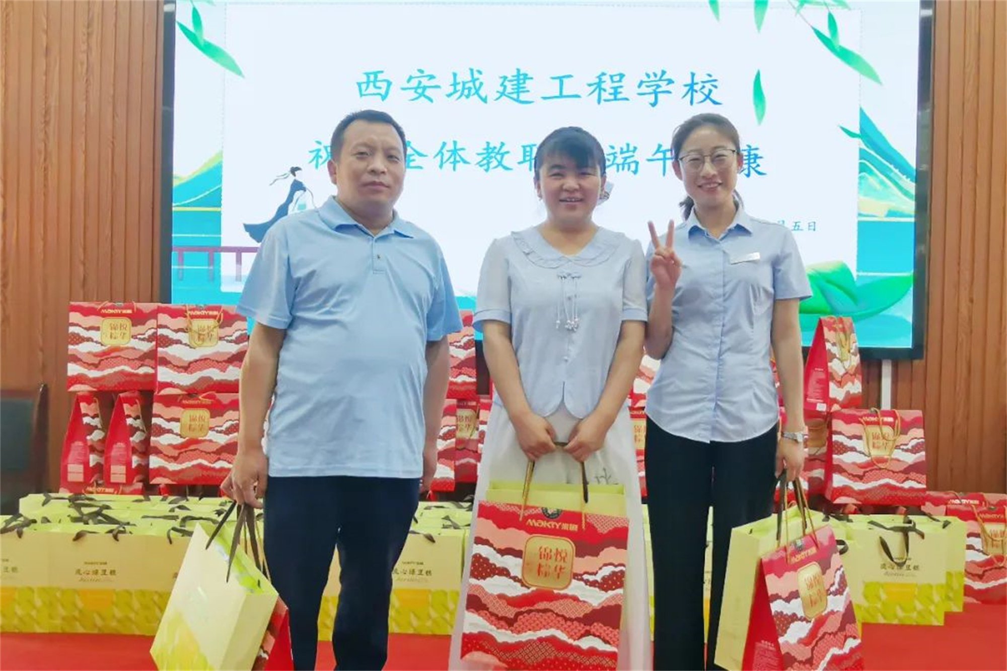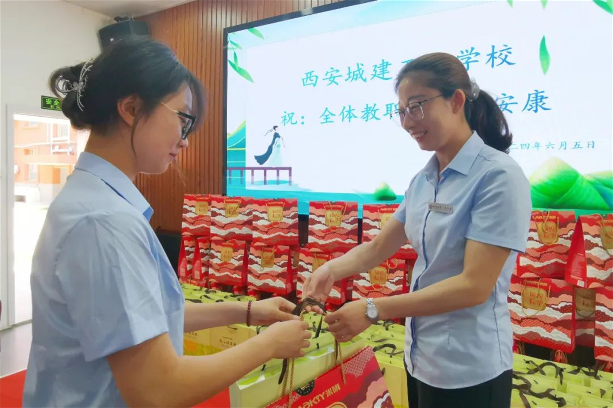 在派发过程中教职工也提前感受到了端午佳节的节日气氛,一箱箱暖心的端午礼品承载着学校对所有教职工真诚的祝福。